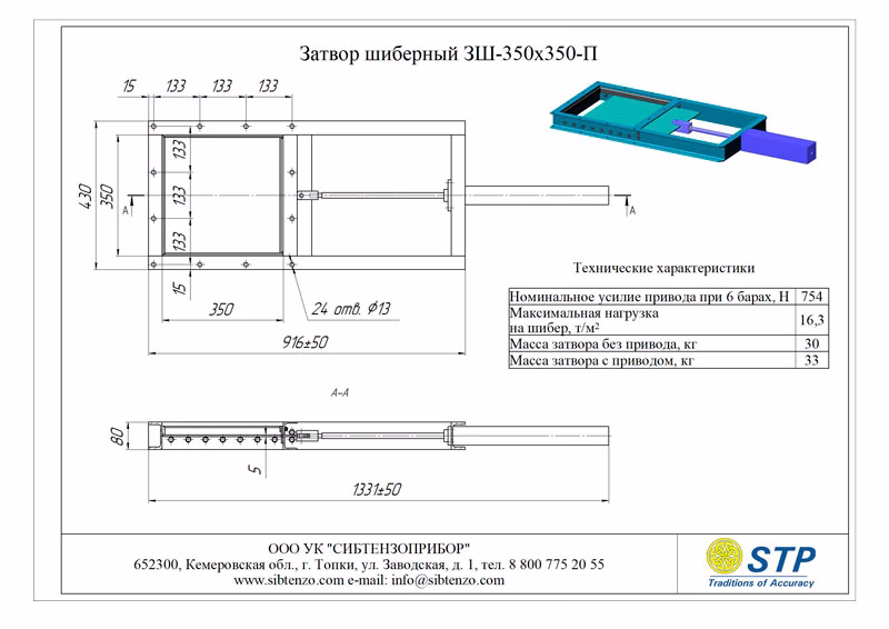 Затвор шиберный 3Ш-350х350-П выполняет функцию регулирования либо полной блокировки потока веществ. Отличительной особенностью устройства является использование металлического ножа (пластины) в качестве запорного элемента.